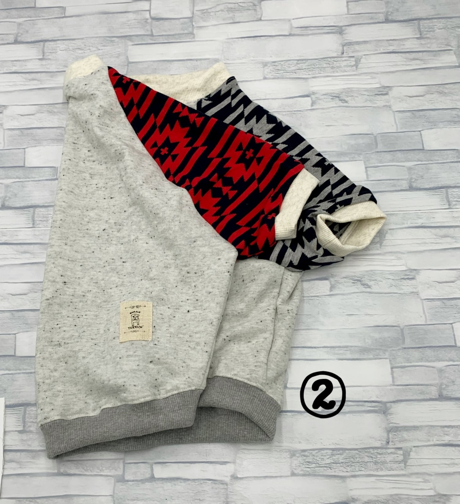 首周りと、裾にゴム穴をつけゴムを通しました。ブルドッグの特殊な体型に合うように調整して着用してください。